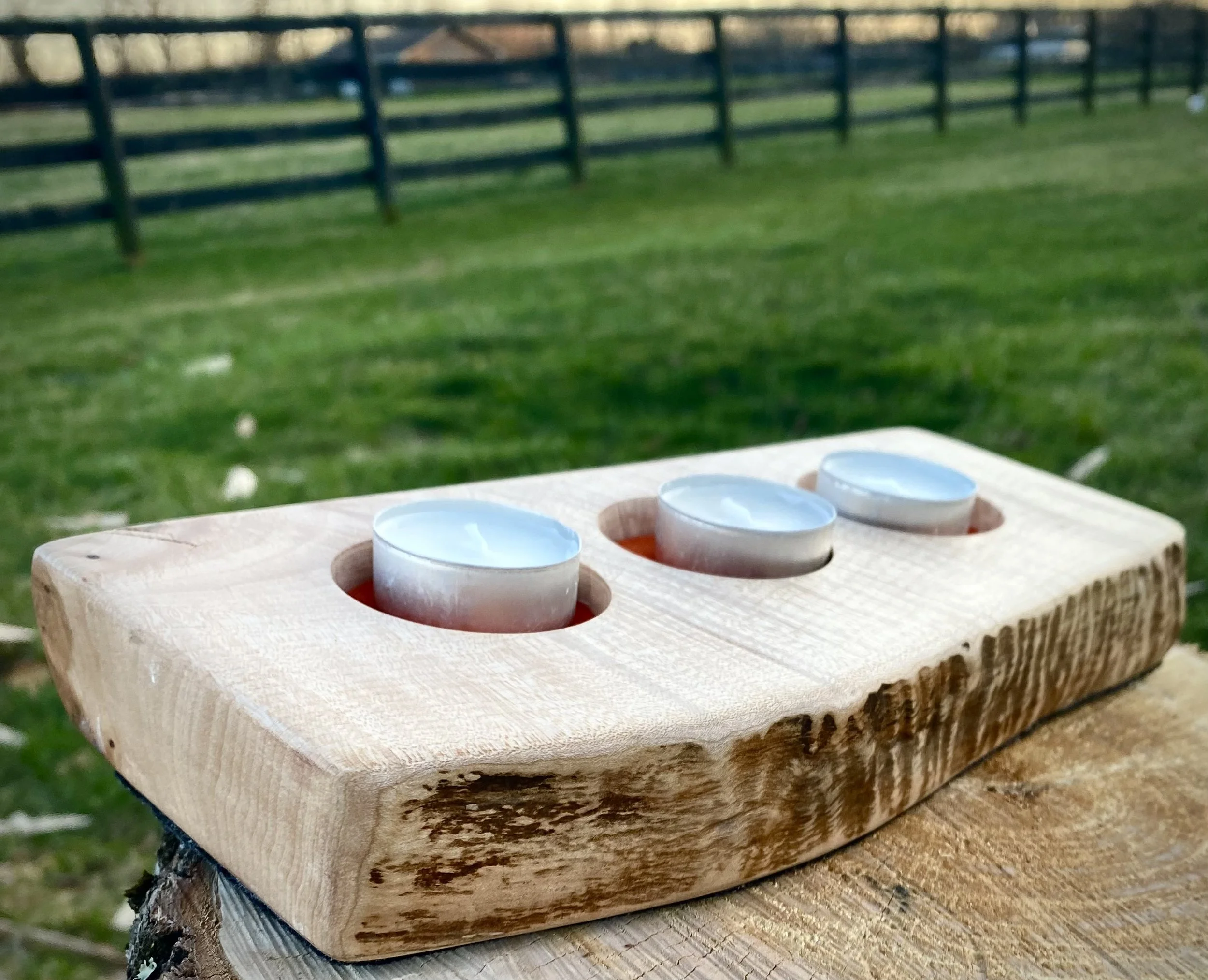 Do you have a house warming or dinner party to go to and want your gift to be super special? check out this handmade votive holder I made from a maple tree from our property. I finished it to an extra smooth finish, then I added a food safe wax that is handmade by my friend George in Ohio.